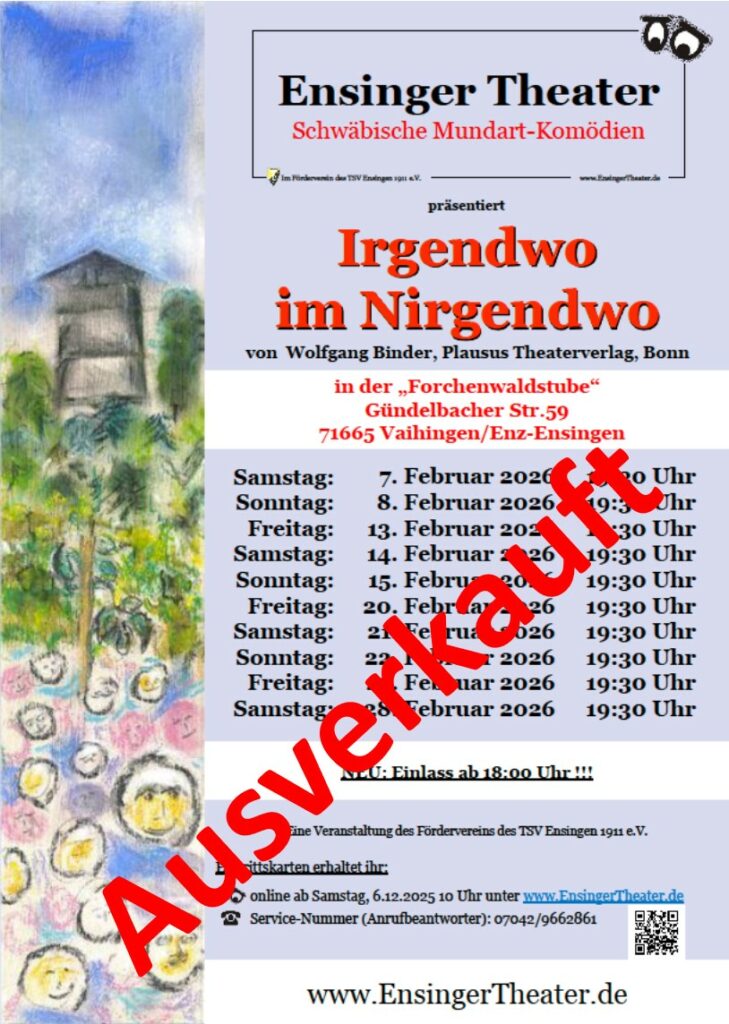 Zu unserem Bedauern bietet die Forchenwaldstube an den Theaterabenden keine warmen Speisen mehr an. Ihr erhaltet jedoch Getränke sowie ,solange der Vorrat reicht, Wurstsalat und Käsewürfel.